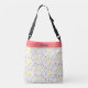 Sweet pink, blue, and yellow flowers drift across this darling crossbody bag. Very pretty and feminine, perfect for spring.