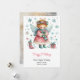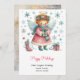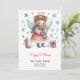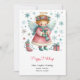 Nyckfull ängel i rosa och blå illustration på ett platt julkort. Baksidan av kortet är ett vackert snöflinga abstrakt mönster. Texten kan ändras. AI-assisterad grafik köpt med kommersiell användning. Konstverk: RedHeronLighthouse och RavenPrintableDesign