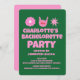 PinkGreen Handwriter Retro Bachelorette Party Inbjudningar