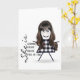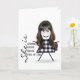 Söt pinneflicka med långt hår, glasögon och buffelmönstrad klänning på vit bakgrund till systerns födelsedag.