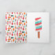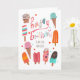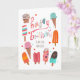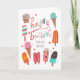 Ett trendigt rosa med orange födelsedagskort för sommaren med glass och pinnstänger för att gratulera någon på födelsedagen. Originalillustration av Caroline Bonne Müller
