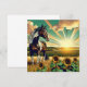 Söt brun och vit fläckig häst som står i ett fält av solblommor under solnedgången digital ai-konst som utförs i en mycket realistisk tecknad stil.
