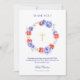 Blå Och Röd Blommig Bebis Dop Tacksamhetskort. Har en krans av akvarellpionor och bebisfoto. Matchande artiklar tillgängliga.