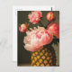 En bukett rosa pioner i en ananasvas