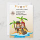 Ahoy Mateys! Ett barn kastar en födelsedagsfest och skattetjakt? Och pirater kommer att vara där? Arrr! Får jag gå med? Är jag inbjuden? Här har vi en födelsedagsinbjudan till unga pirater och ännu fler unga pirat-flickor. Monkey pirat och pirat, inbjudningstext och datum på framsidan, plats och mer ungt pirater på baksidan.