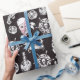 Vita bilder av döskallar & pirat inslag på svart bakgrund, sömlös upprepning av mönster
