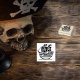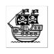 En charmerande svart och vit illustration av en frakt i pirat, komplett med skalle och korsben på dess segel och flaggor. Frakten har detaljerad konturkonst och visar skrov, master och portholer. Frimärke är ett perfekt uttryck för pirat tales äventyrliga och upproriska anda.