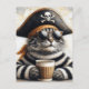 Pirat-katt i fuzzy sweater med kaffe vykort