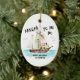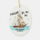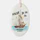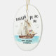 Ahoy mig hjärtlighet! Lägg till lite humor i helgdagarna med denna roligt julprydnad med pirat tomten som seglar i havet i hans frakt. Anpassa det med din egen hälsning för en engångsgåva eller för att hänga på din egen träd. Du kan till och med namn frakten! Visas här med "Treasure Chest", men du kan ändra det till en persons namn eller spelar ingen roll flyter din båt. Art av KL Lagrar.