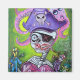 En Cute och Creepy Odöda Skeleton Pirat Girl med sina Voodoo Dolls och Rosa Octopus Pet. Fantasy Outsider Art in a Modern Street Art Stil.