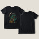 A playful illustration of a dinosaur dressed as a pirate, standing triumphantly on a treasure chest with a sword in one hand and an eye patch over one eye. Surrounded by scattered gold coins, this fun cartoon design combines the thrill of pirates with the excitement of dinosaurs, perfect for kids' apparel, stickers, or adventure-themed prints.