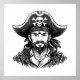Pirate head with hat sailor and Eye Patch and Bear Poster