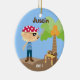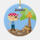 Denna prydnad för anpassadepiratjul kan personifieras med ditt barns namn och år. Den gör en underbar strumpastuffer- eller julgåva. Den presenterar en gullig lite pirat, skattbröstkorg och palmträd.