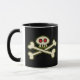 En stylized piratsymboldesign med glödande röda ögon och ett ljust - grönt skisserar.