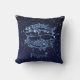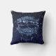 Dekorativ kudde med zodiaksymbolen för Pisces i mjuk blått silver, överdragen med stjärnorna i konstellationen, mot bakgrund av himlar, som är från djup midnattsblå till svart.