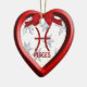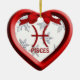 En grafik Pisces Symbol-design av artist/designer Charmaine Paulson på en röd hjärtform 3D ser ut som julprydnad. Utsmyckningen har textmallar för ditt namn, jul och år. ©2012charmainepaulson
