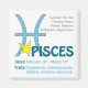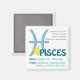 Pisces Traits Magnet gör en perfekt-födelsedagspresent till alla Pisces. Pisces är det tolfte tecknet på zodiac och omfattar alla individer som är födda från den 19 februari till den 20 mars. Pisces-symbolen är fisken. Pisces Personality Traits är Imaginative, Compassionate, Selfless, Intuitive och Secretive. Pisces Birthstone är Aquamarine och Pisces Reguling Planet är Neptune