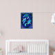 Poster in a Pisces illustration featuring two turquoise blue fish swimming in opposite directions against a starry, deep blue background. A crescent moon and stars enhance the celestial theme, evoking the imaginative spirit of the Pisces zodiac sign.