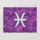 Pisces Zodiac Symbol på Fuchsia Rosa Digital Camo Vykort