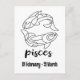 Detta vykort är en fantastisk illustration av Zodiac-tecknet Pisces, symboliserat av två fisksimmar i motsatt riktning. Det är känt att det är fantasifullt, intuitivt och barmhärtigt, och det här vykortet skulle vara en underbar gåva till alla Pisces i ditt liv. Pisces, Zodiac-kort, 19 februari-21 mars.
