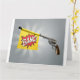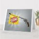 En sex skottpil med en flagga som kommer ut från tunnan som säger att ord bang på den mot en isolerad ljusbakgrund
