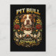 A bold ornamental illustration of a pit bull surrounded by roses and doves, symbolizing loyalty, compassion, and the misunderstood strength of the breed.