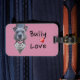 Den här bagagetaggen ro-färgad visar vår älskande Pitbull vid namn Sarge. Med sitt huvud upptippat, hans öron flödade tillbaka och en förtjusande blick på hans ansikte håller Sarge ett silver hjärta med ord, "I kärlek du," skrivet inuti. På märkrn finns ord, "Bully Kärlek" och lite rött hjärta. En perfekt bagagemärke för varje Pitbull älskare.