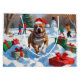 En stark och lekfull Pitbull drunknar i snöslandskapet och bär en röd julhatt av helgdag. Den glatta vinterscenen avspeglar den här älskade rasens energi, lojalitet och charm och blandar säsongens magi med Pitbulls personlighet.