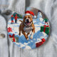 Pitbull Hund Runin i Snö med julklapp Knapp