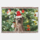 Cute Pitbull Hund med Julgran Ornaments Snö Man i bakgrunden.