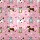 Pitbull, knärör och pärlhöns, rosa och lila tyg