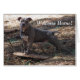 Kortet säger: "Välkommen hem." Inuti den står det: "LÅT OSS SPELA!" Ett vackert kort som visar en stilig Blue Nose Pitbull vid namn Sarge. Sarge står med sina två tassar på sin favorit leksak, en skateboard. Hans ben är utökat och hans öron är högt och vaksamt när den här stiliga hund tittar på dig i en perfekt.