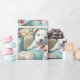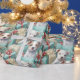 Brun och vit valpar på en baksida av skalbaggen med inslagna presenter, vilken underbar papper att figursätta dina presenter i år, ett måste ha för hypofysfamiljer eller andra hundälskare - - A © WhimsicalArtwork™ original -