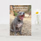 Det här superskojets födelsedagskort visar min stiliga, men goofy, Blue Nose Pitbull vid namn Sarge. Sarge är sitta på en högtrappa och öppnar munnen i en stor yawn som bara en Pitbull klarar av. Haha. Ord på kortets framsida säger: "Vill du göra en bet på din födelsedag?" Innermeddelandet säger: "Bet jag skulle kunna fiffla upp din födelsedagskalas på en bita. Vill du prova det? Grattis på födelsedagen!"