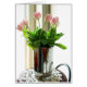 Dessa kort, t-shirts och andra artiklar är adorerade med ett foto av en bukett av rosa tulips i en glansig metall-pitcher.