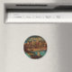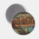 Vintage vykort som visades i Pittsburgh med måndagsljus 1931 med tanke på Monongahela-floden, en järnvägsbro som spänner över den och byggnaden i centrala städer som tändes nattetid. Omtryckt på den här magnet.