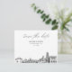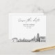 Modern Pittsburgh svart-vit spara-datum-vykort inbjudan på matpapper. Framsidan visar en fantastisk skiss som sätter tonen för din bröllopsdag. Lägg till anpassad text för att göra den till din egen. Gå in i Zazzle designverktyg för ytterligare designanpassningar. Kommer automatiskt på matpapper. Justera till halvglans om du föredrar.