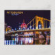 Nattbelysning och skylt över den vackra staden Pennsylvania skiner i Pittsburgh med nattvykort. Bron, floden och den färgstarka reflektionen i ljus visar sig i förgrunden medan staden ljus i bakgrunden i ge ger en antydan om skönheten i Pittsburghs byggnad. Underbart vykort som du kan lägga till i dina städer genom nattsamling.