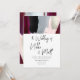 PixDezines chic och moderna masala röda bröllopsinbjudan - med akvarellpenseldrag i djupt mörkröd kan kallas dahlia röd, burgunder eller rödvin. Den handskrivna stilen håller också med om den moderna trenden för detta kort. Brölloppsfärgpalett av burgunder + rosblush, svart, roséguld med falskt metalliskt silver och grått. Lätt att ändra från våra olika mallar.