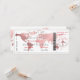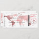 PixDezines-boardingkortet sparar datumet för ett destinationsbröllop med faux ro guld världskarta och ett litet rött hjärta för att ange ditt mål.