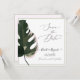 PixDezines Brokiga Monstera blad Mörk skoggrön och vacker nyans av grå, skoggrön och elfenben. Grönska Spara datumet med modern kalligrafi stil.