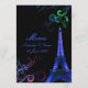 PixDezines Eiffeltornet i blått neonljus och virvlar. Bröllop på destinationen. Med parisiska landmärken..och ljuskronor och silhuetter av virvlar.