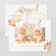 PixDezines vattenfärg med vårbukett / blommor, strålande med "välsignad" i falskt guld penselskrift, med ett guldhjärta för ett foto till födelseannons-kort, med DIY bakgrundsfärg och typsnitt.