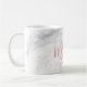 PixDezines framtida fru. mugg i faux metallic ro guld, modern handskriven penselmanus/kalligrafi och ett hjärta på vita marmor.