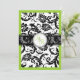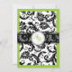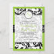PixDezines monogram-inbjudningar, pavo-damast i svart med gör-det-själv grannysmith äppelgrön bakgrundsfärg.