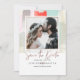 PixDezines Modern konst färgblock målad med akrylfärg penseldrag i rosablommig rosa, korallorange och mintgrön brölloppsfärg trender. En modern och stilren handskriven skrift i falskt metalliskt för din spara datumet (se filter för att ändra bildernas ton). PixDezines dynamiska mönster låter dig redigera varje element i de flesta mallar.