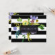 PixDezines bat mitzvah mottagningskort eller festkort, svarta och vita ränder är justerbara på DIY-bakgrundsfärg med blomster vattenfärg, ranunkel, peon och krysantemum.com. Alla rättigheter reserverade.