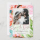 PixDezines ursprungliga orkidéer, spara datumkortet, med korallorkidéer, blått och rosa handflatan. Tropiska öns stil bröllop-svit.