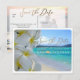 PixDezines Plumeria+Strand Spara datumet Vykort