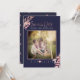 PixDezines save the date-kort med falskt rosenbladsguld folie höstbladverk och rolig modern kalligrafi skript. Gör-det-själv-bakgrundsfärg, marinblå.